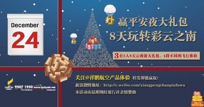 昆明2013年5月23日電 /美通社/ -- 時(shí)值海航創(chuàng)業(yè)二十周年和云南祥鵬航空開航七周年之際,2013年5月31日,云南祥鵬航空將開通首個(gè)昆明=上海直飛航班。首航期間,為回饋廣大旅客支持,云南祥鵬航空推出了往返均為350元的超值優(yōu)惠價(jià)格。