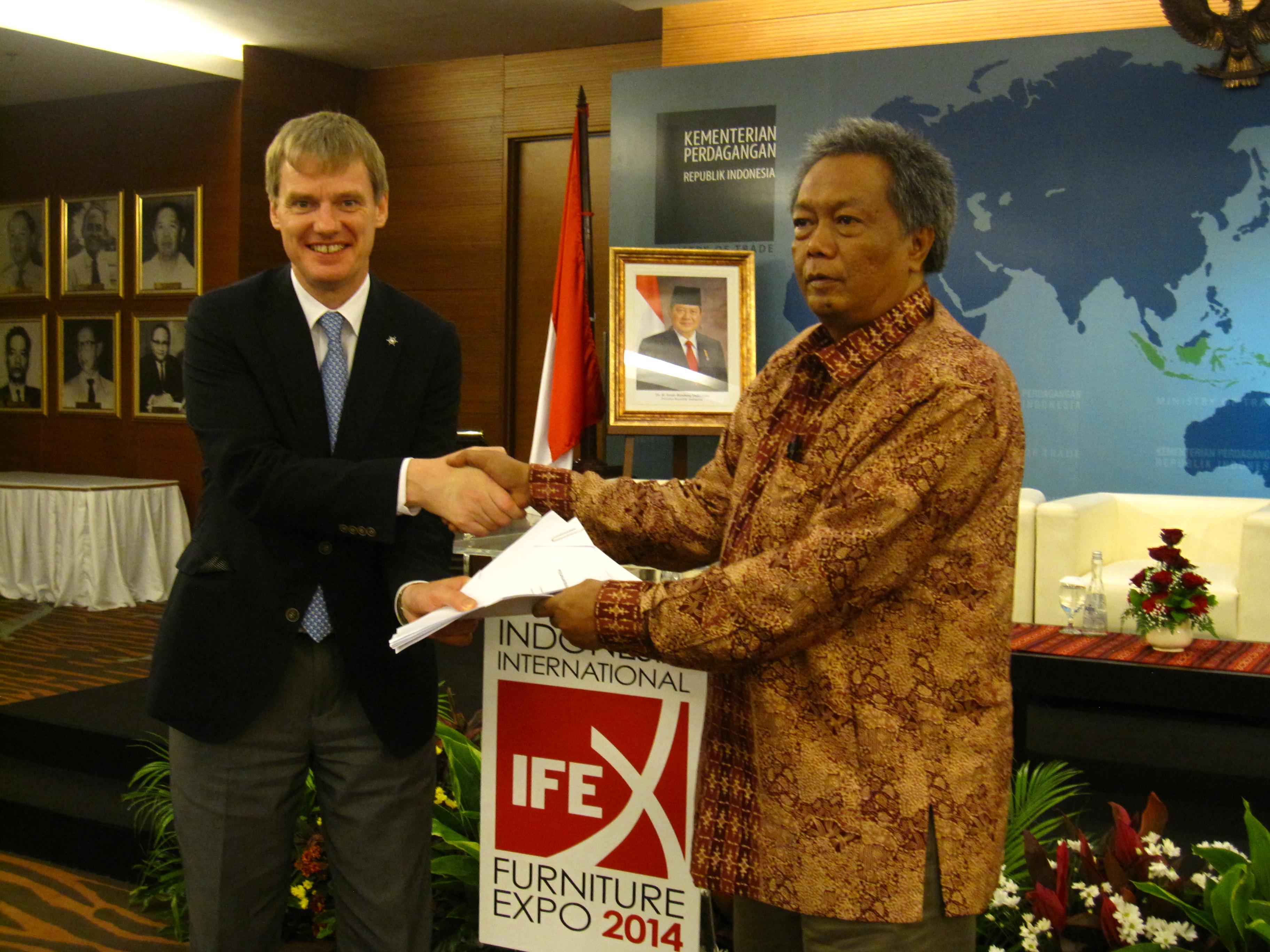 印尼雅加達(dá)2013年7月9日電 /美通社/ -- 亞洲博聞聯(lián)同印尼家具協(xié)會(huì) (AMKRI) 將舉辦印尼國際家具展 (IFEX)。展會(huì)將于2014年3月11至14日在雅加達(dá)國際展覽中心 (JI Expo) 及2014年3月12至15日在雅加達(dá)會(huì)議中心 (JCC) 舉行。亞洲博聞高級副總裁栗棲尹武與AMKRI主席Soenoto先生、印尼工業(yè)局農(nóng)業(yè)部部長Benny Wahyudi先生及印尼貿(mào)易局國家出口貿(mào)易發(fā)展部部長Gusmardi Bustami先生在7月5日于印尼貿(mào)易局舉行的新聞發(fā)布會(huì)中宣布本次合作。