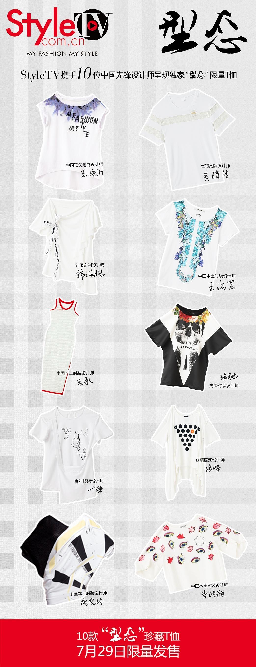 北京2013年7月24日電 /美通社/ -- 作為女性高端時(shí)尚生活方式類的跨媒體平臺(tái),StyleTV中文網(wǎng)于2013年7月23日正式上線。為了推動(dòng)中國(guó)時(shí)尚設(shè)計(jì)力量前行,傳遞本土設(shè)計(jì)師的時(shí)尚態(tài)度,讓更多人了解到中國(guó)新一代設(shè)計(jì)師的風(fēng)采,StyleTV中文網(wǎng)攜手十位才華橫溢的華人設(shè)計(jì)師推出以“型態(tài)”為主題的珍藏公益T恤。