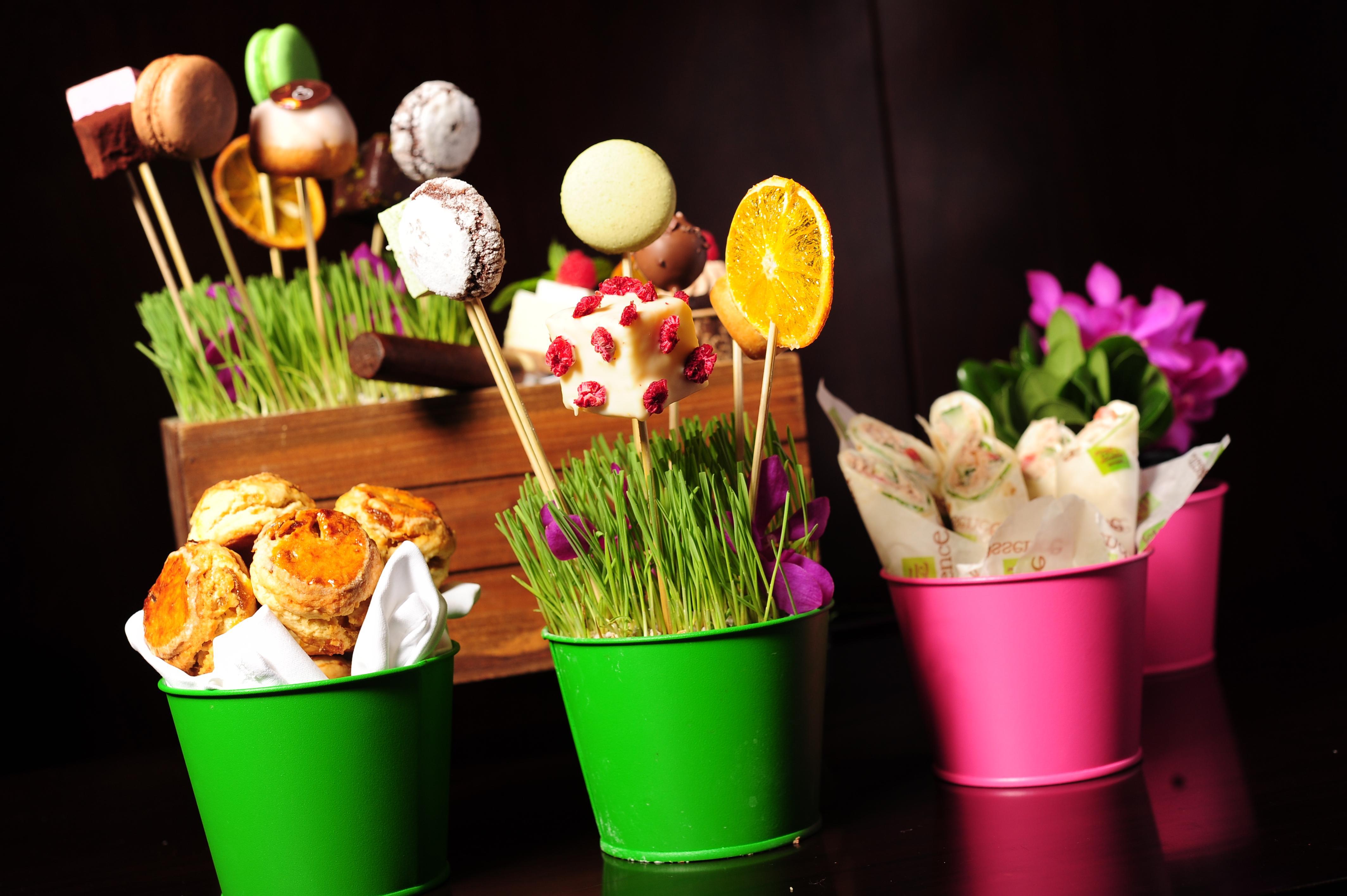 亞洲甜品大師Cary將創(chuàng)意與美味相結(jié)合,告別了傳統(tǒng)英式下午茶的傳統(tǒng)模板,注入新潮、自由的獨(dú)特元素。飄著清香松木味的可愛小推車,細(xì)膩潔白的小石頭,還有碧綠清新的小麥草,給您撲面而來的清新。點(diǎn)綴的小花旁,誘人的甜品如同可愛的棒棒糖般豎立著,讓食客瞬間回到童年的甜美記憶中。