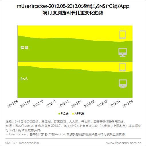 與SNS相比,微博服務流量向App端轉移更加明顯