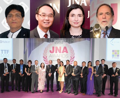 香港2013年9月13日電 /美通社/ -- 梁適華、陳世英和其余16位獎項得主,在接近500位同業(yè)見證下,于9月12日晚在香港君悅酒店舉行之頒獎典禮暨晚宴上接受第二屆JNA 大獎之各項榮譽(yù)。