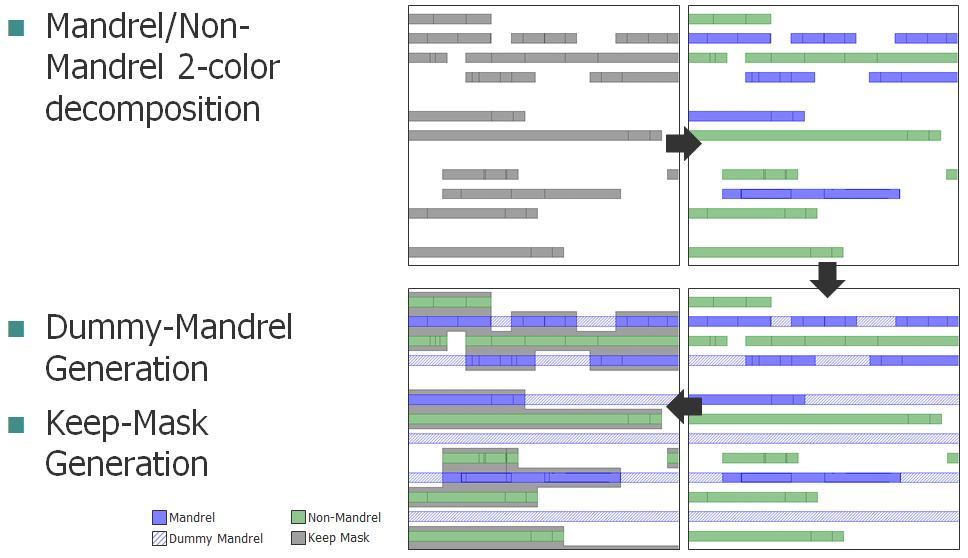 這個(gè)工藝是版圖設(shè)計(jì)人員看不到,因?yàn)樗麄儾划嬤@兩個(gè)光罩或者對(duì)這個(gè)流程進(jìn)行任何類型的特殊分解檢查。嚴(yán)格的分層設(shè)計(jì)規(guī)則確保在晶圓廠生成這兩個(gè)光罩成為可能。因?yàn)檫@種雙重曝光版圖設(shè)計(jì)師根本看不見,因此你很少聽到有人談及。