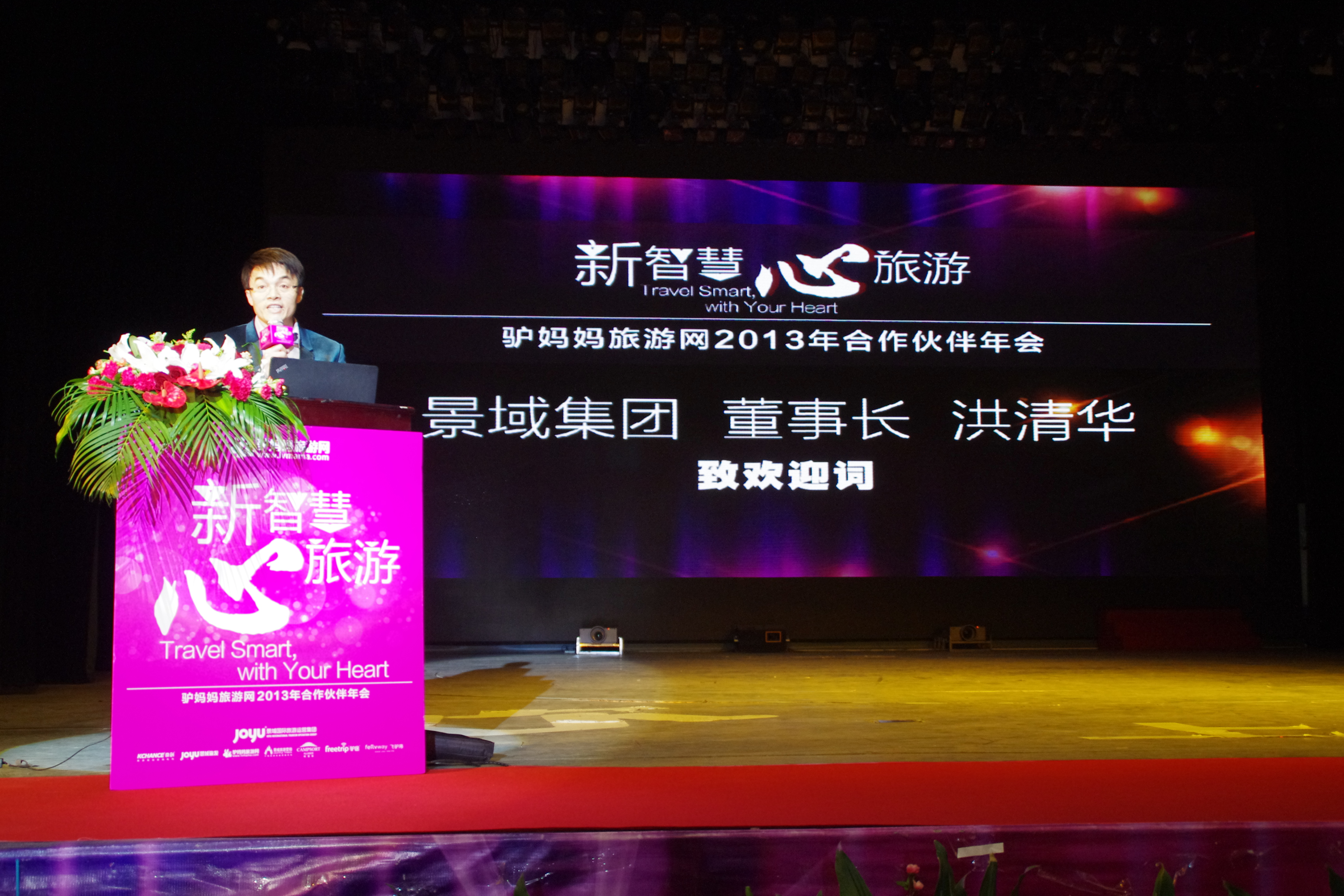 景域集團董事長、驢媽媽旅游網(wǎng)創(chuàng)始人洪清華首先致歡迎詞,代表主辦方驢媽媽旅游網(wǎng)對蒞臨本次年會的各位領導和業(yè)界同仁表示歡迎和感謝。洪清華表示,回顧即將過去的2013年,“變革”這兩個字成為了旅游行業(yè)的關鍵詞。10月1日起開始實施的《旅游法》開啟了個性化、多元化的休閑旅游時代。自駕出游大幅增加,散客旅游逐漸成為主體。而在當前大數(shù)據(jù)時代背景下,科技和移動應用的不斷創(chuàng)新正在成為在線旅游業(yè)變革的重要推動力。旅游市場瞬息萬變,為我們帶來了機遇的同時也帶來了挑戰(zhàn)。