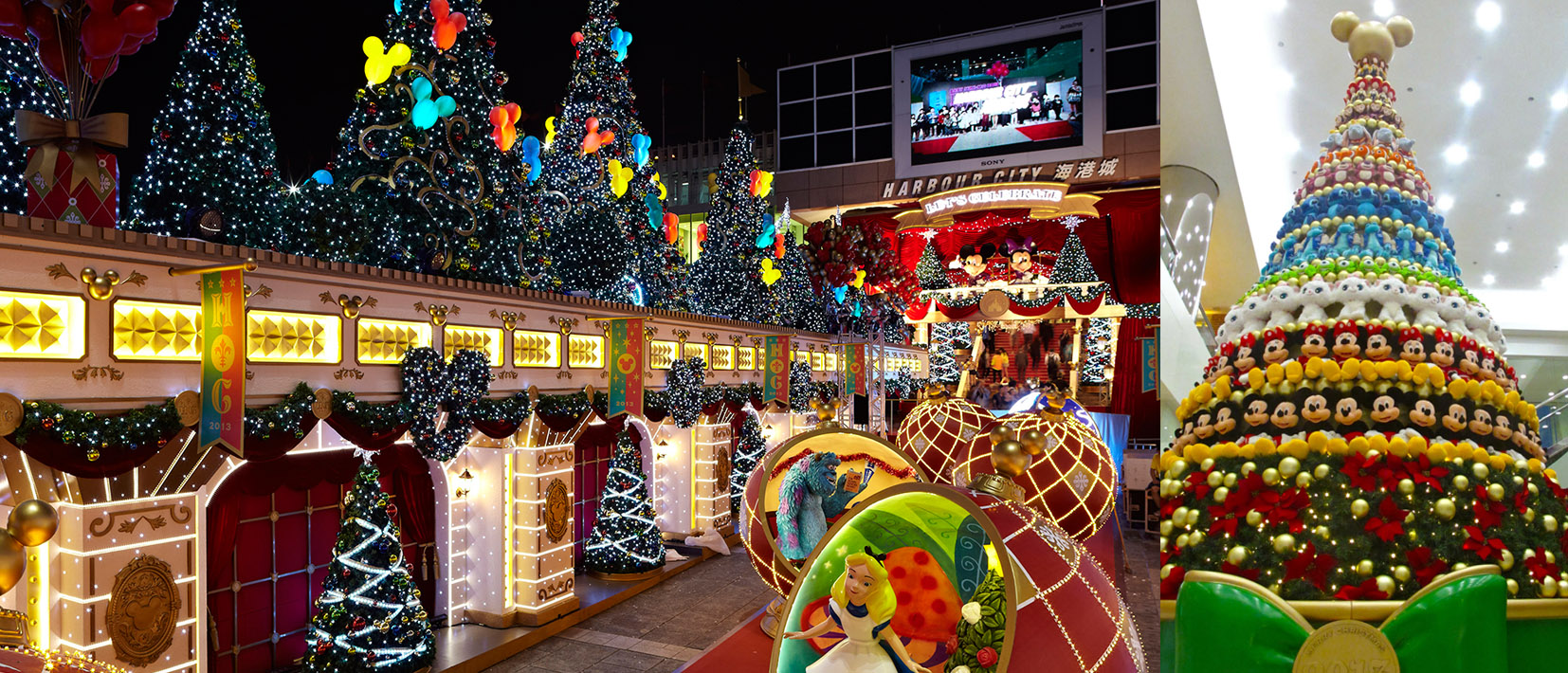 海港城今年再次與香港迪士尼樂園攜手為大家送上一個華麗圣誕舞會。360度全景華麗大宅以充滿圣誕氣氛的奢華裝飾為主調(diào)。超過30棵大大小小的圣誕樹遍布整個廣場,而每棵圣誕樹上都掛滿別致立體的圣誕米奇頭掛飾,并系上七彩的圣誕絲帶。米奇與米妮雕像,亦以大宅主人身份,于海運(yùn)大廈正門口的露臺上歡迎賓客。大宅內(nèi)掛上多盞閃亮奪目的巨型水晶吊燈,讓賓客猶如置身于盛大的圣誕派對中。圣誕布置更從露天廣場伸延至海港城海運(yùn)大廈大堂,大堂中央會設(shè)置以超過200個不同迪士尼公仔組成的16尺高巨型圣誕樹,當(dāng)中包括米奇、米妮、大眼仔、毛毛、史迪仔、勞蘇、翠絲、胡迪、猴子阿拔、Mo仔、小飛象及 Marie,必定成為這個圣誕拍照熱點(diǎn)。