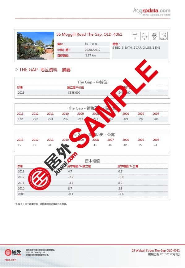 該報告為有意在澳大利亞置業(yè)的中國買家提供極具價值的房產(chǎn)信息,助其做出更明智更博識的投資決定。買家只要登陸居外網(wǎng)澳大利亞房源頁,選取任何一個房源,即可免費(fèi)獲得該房源的詳細(xì)中文報告。報告涵蓋該房產(chǎn)的銷售歷史、小區(qū)銷售情況、區(qū)內(nèi)人口面貌、家庭收入和結(jié)構(gòu)分析、土地和房價價值評估。報告中所引述的數(shù)據(jù)均來自澳大利亞統(tǒng)計(jì)局等政府權(quán)威機(jī)構(gòu)。
